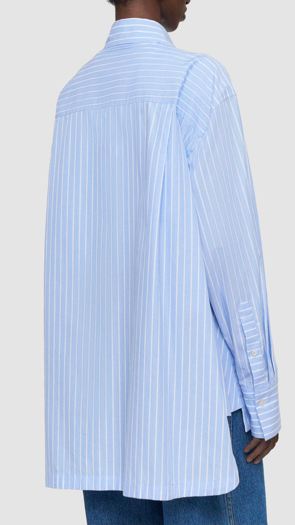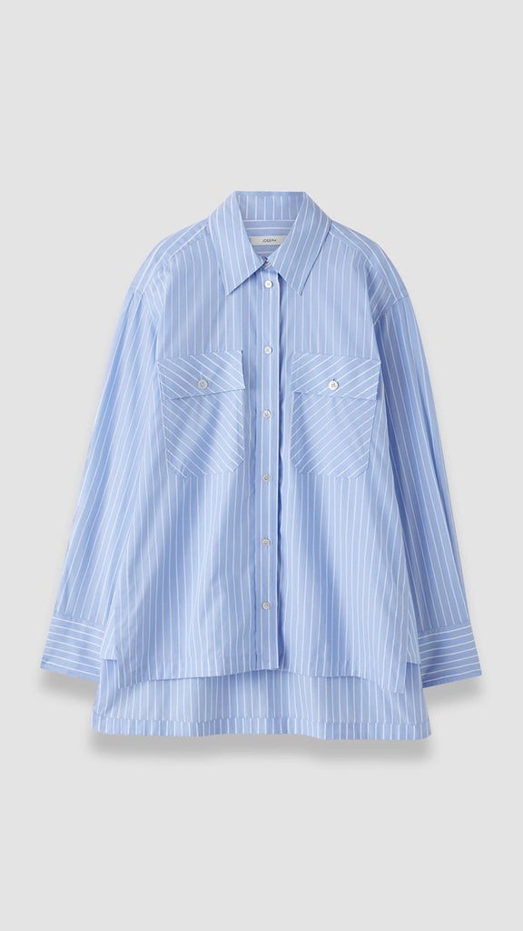 The Ranya Cotton Stripe Shirt is a relaxed fit style, crafted from 100% cotton. This modern classic features chest patch pockets and a curved hemline, with a side detail that adds proportion and visual dimension.