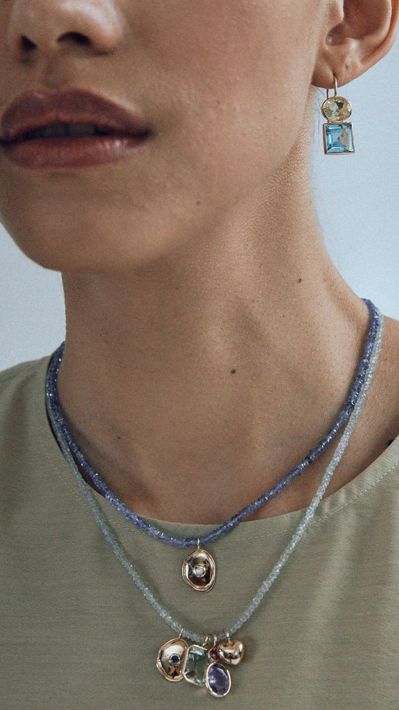 Tiny Beaded Necklace in Tanzanite can be worn solo, or accessorize it with Lizzie Fortunato's assortment of fine charms, featuring colourful gemstones, pearls, and 14k gold.