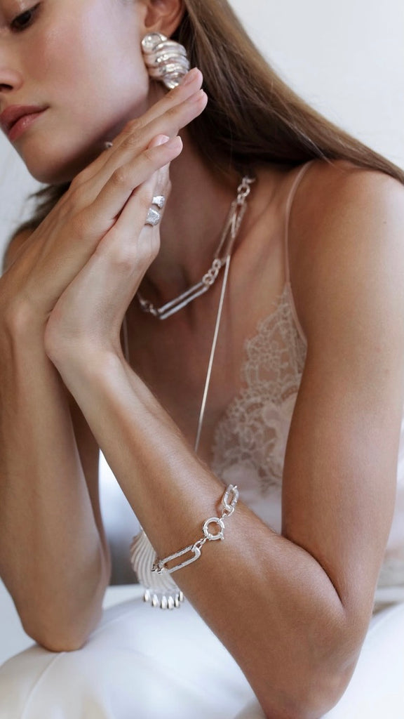 A tribute to woman as a timeless force, embracing womanhood not as spectacle, but as the source of life itself. Each icy silver link joined together symbolizes unity and unbreakable bonds, especially meaningful in the context of family.