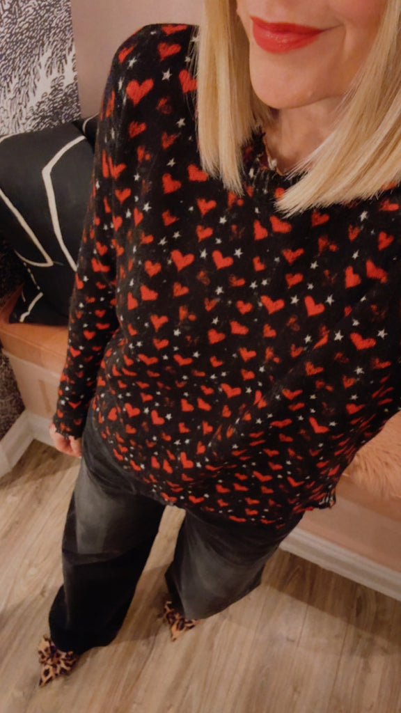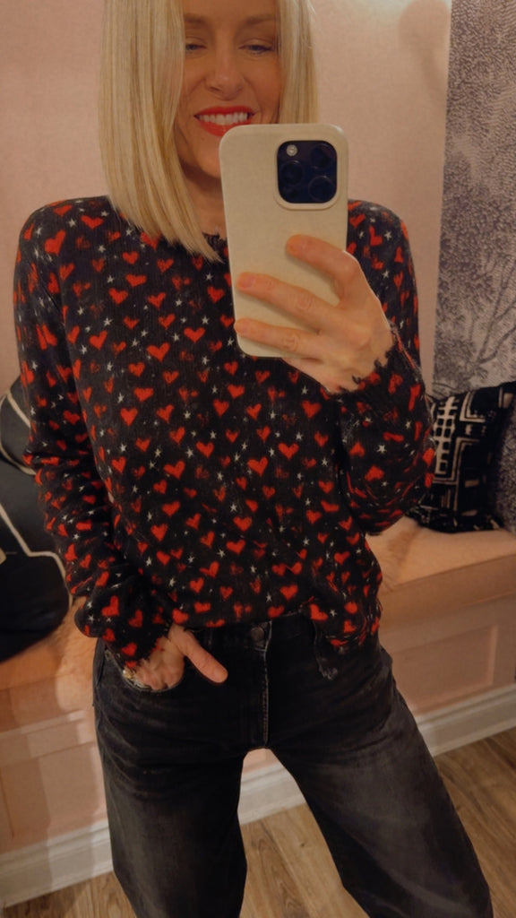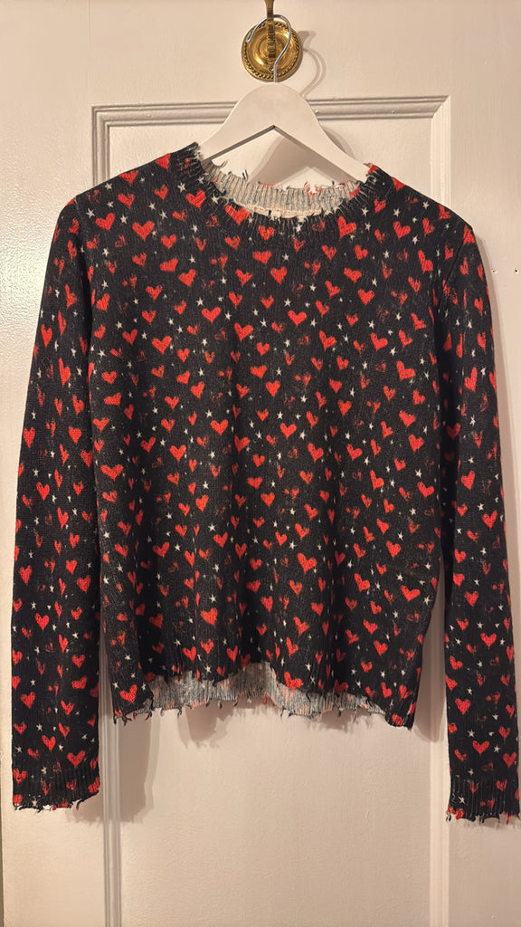Printed relaxed crewneck sweater built with 100% cashmere.