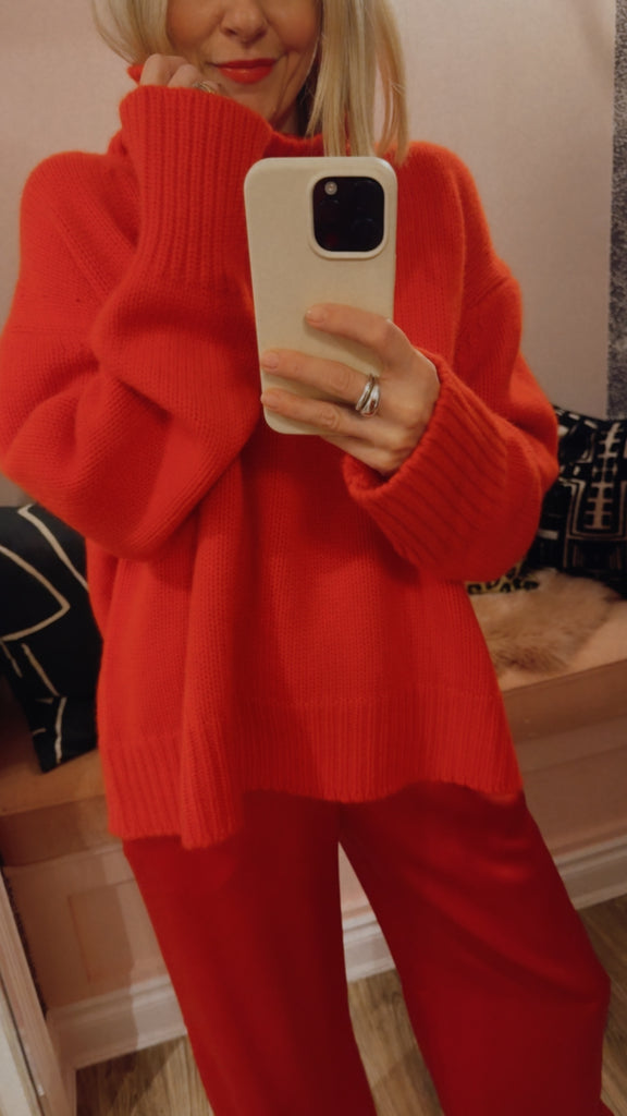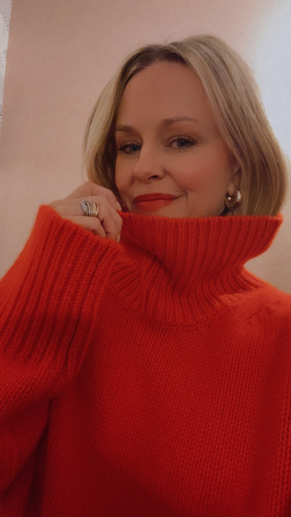 Relaxed cashmere turtleneck with ribbed hem and cuffs.