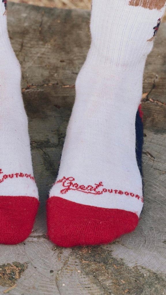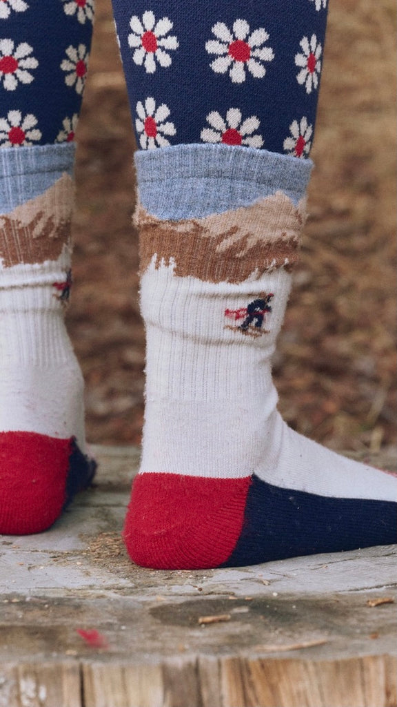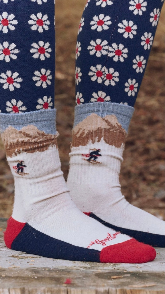 Designed for all day comfort and knit with a classic mountain landscape from luxurious merino wool yarn. Featuring a terry knit footbed that provides cushion in every step.